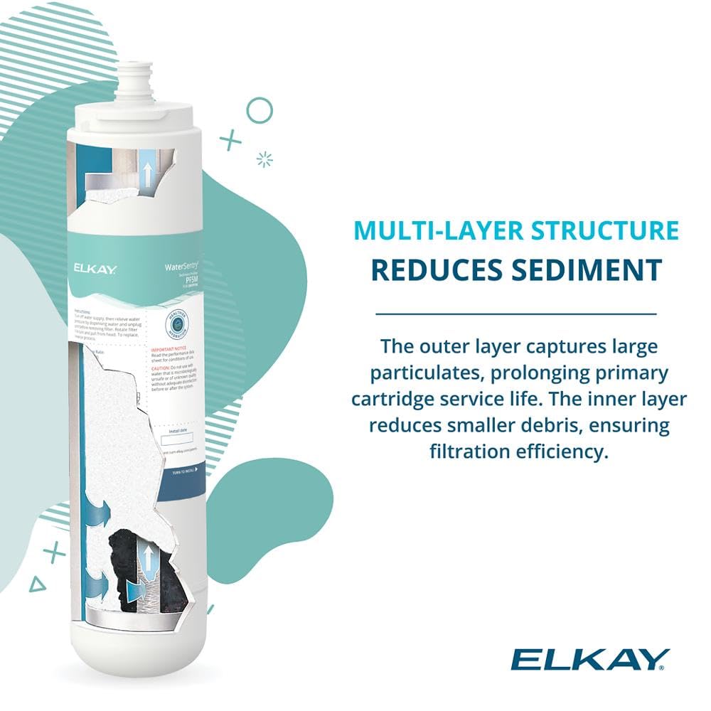- For best results, replace prefilter every six months or as needed, depending on water quality. Universal prefilter can be paired with any existing Elkay or non-Elkay water filter to create a two-stage filtration system, preventing clogging of the main filter and reducing particulates in the water.; Encapsulated filter cartridge allows for clean and sanitary filter changes.